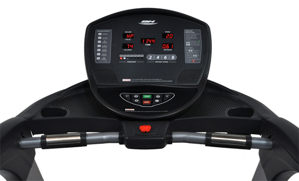 MOTOR: 2.25 Continuous HP DC Motor SPEED: 0-10 mph INCLINE: 0-12% Contact Heart Rate Sensors for Simple Pulse Measurements 0-10 mph Speed with Quick Select Keys for Ultimate Simplicity Whisper Quiet 2.25 HP DC Motor for Powerful Performance Large 20” x 55” Running Surface for Comfort and Stability Folds up for Easy Storage Safe Drop Lowering Feature for Secure Use MOTOR: 2.25 Continuous HP DC Motor SPEED: 0-10 mph INCLINE: 0-12% HEART RATE DETECTION: Contact RUNNING SURFACE: 20” (W) x 55” (L) PROGRAMS: Built in Manual and Preset ANTI-STATIC BELT: Non-Skid LOW MAINTENANCE DECK: Active Flex Suspension System ROLLERS: 2” FOLDING: Yes With Safe Drop Lowering Feature CONSOLE: Accessory Tray with Water Bottle Holder, Built in Programs, Quick Speed, Positive Response Silicon Keys, Safety Stop Key DISPLAY: 5 Red LED Windows that display Time, Distance, Pulse, Calories Burned, Speed, Incline and Pulse HOME WARRANTY: Lifetime Frame Warranty, 5 Years Parts Warranty, and 1 Year Labor Warranty MAX USER WEIGHT: 325 lb. UNIT WEIGHT: 290 lb. UNIT DIMENSIONS: 75” (L) x 32” (W)